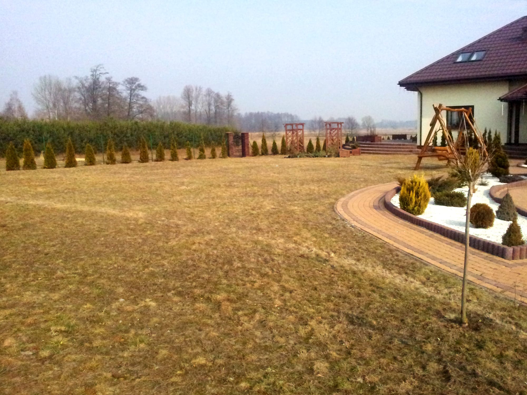 A rather large plot with a new house in a small town near Lubartów (Poland). On the premises is sandy soil and flat surface. Garden owners - a young family with children.