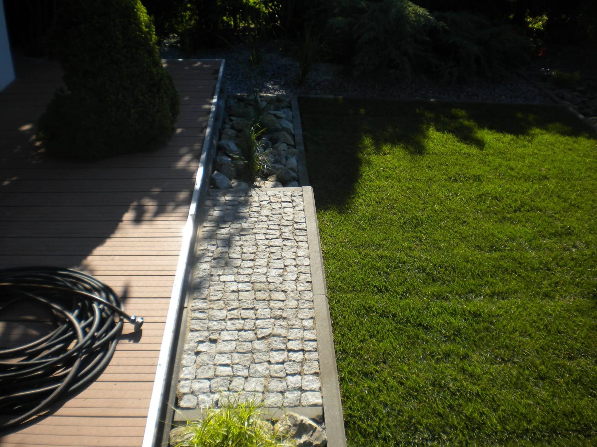 Summary: Modernist and minimalist’s dream garden with a geometric layout, minimal choice of material and plants. Flat surface and rectangle shape. A hedge leads along the perimeter of the garden to the right and opposite the terrace. Gravel mulch covered plants in borders. All of these elements make a quiet and peaceful atmosphere. Easy and cheap maintenance.